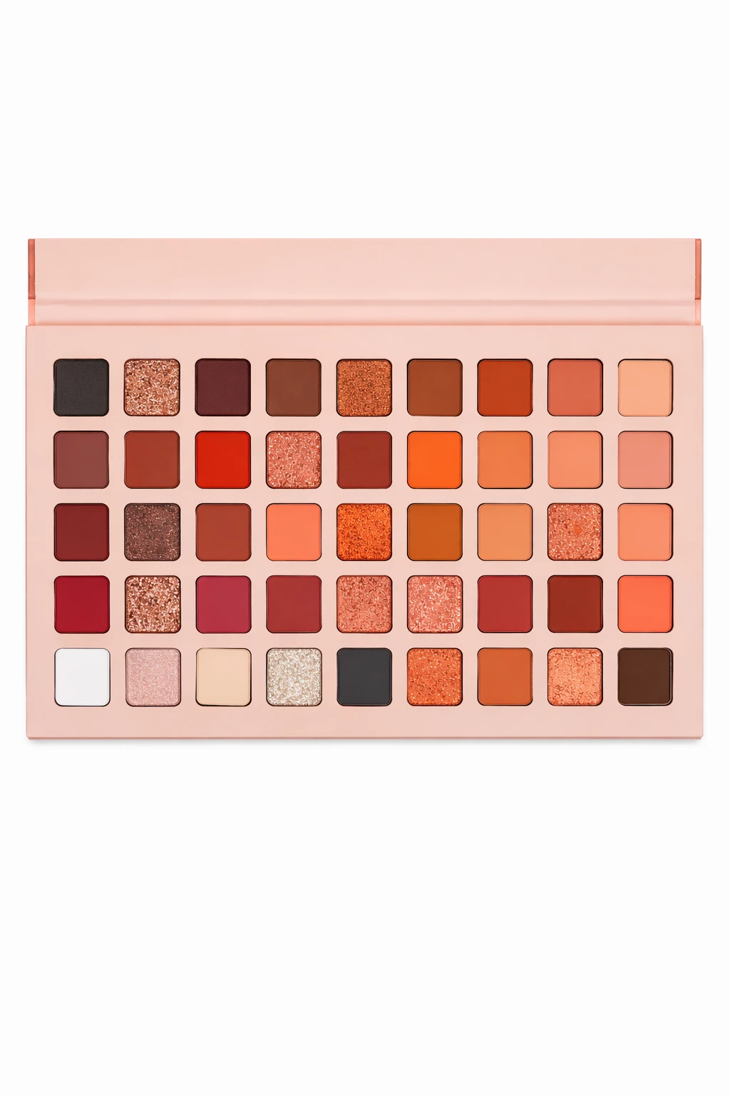 Paleta de sombras para ojos con una amplia variedad de tonos neutros, cálidos y profundos,
