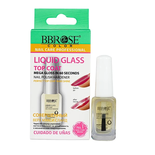 Aplicar como última capa sobre el esmalte de color o directamente sobre la uña natural.